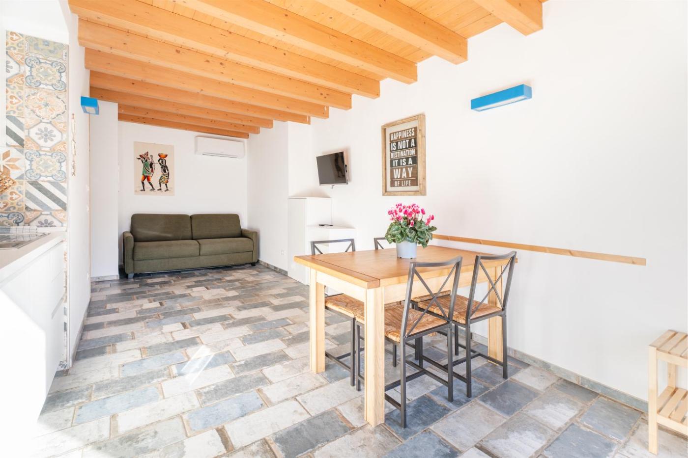 Apartment with Terrace. This air-conditioned apartment consists of 1 living room, 1 separate bedroom and 1 bathroom with a shower. Meals can be prepared in the well-fitted kitchen, which is equipped with a stovetop, a refrigerator, kitchenware and a microwave. Featuring a terrace with mountain views, this apartment also provides a washing machine and a flat-screen TV. The unit offers 2 beds.