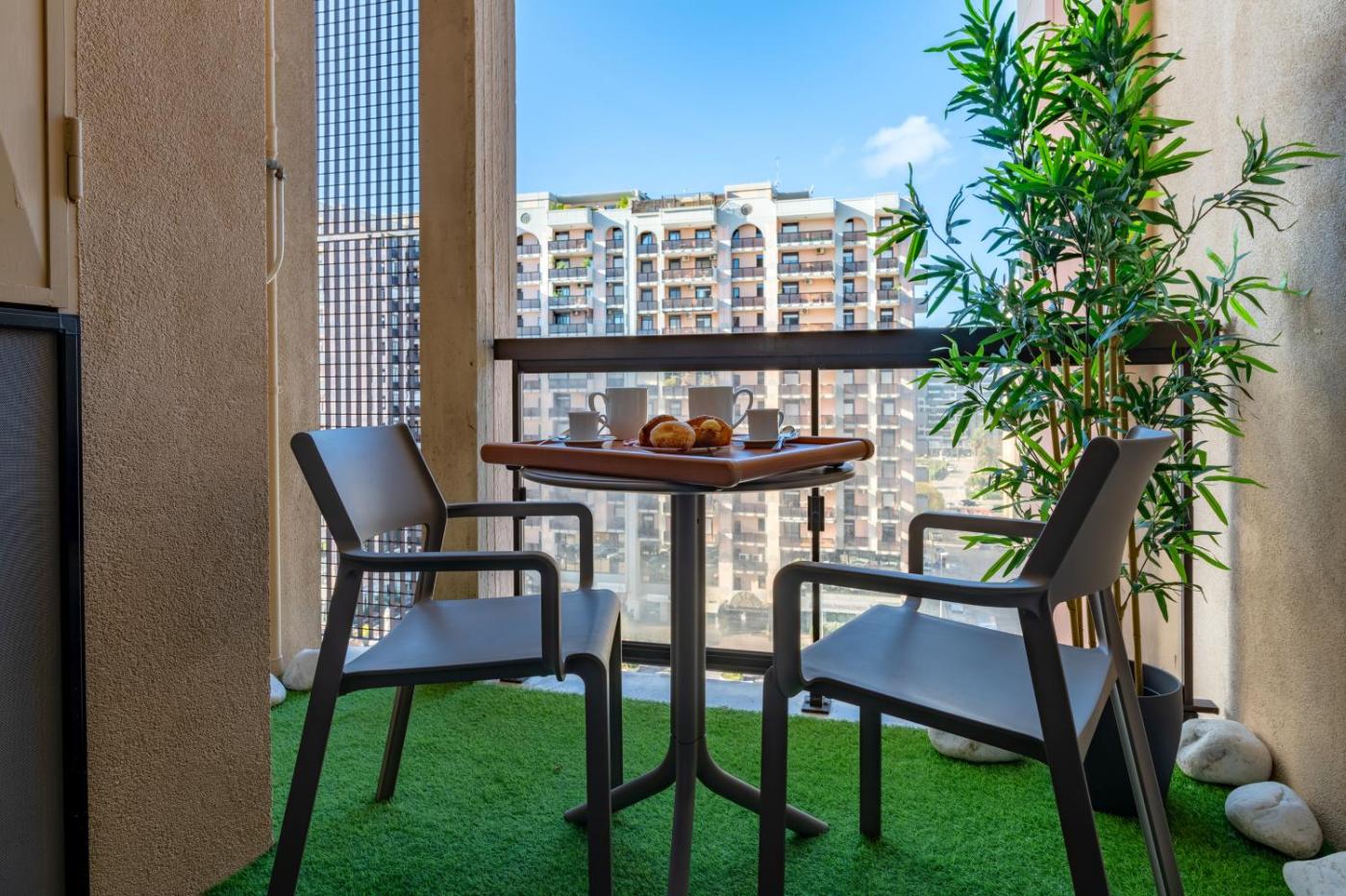 Three-Bedroom Apartment. Featuring a private entrance, this spacious apartment also consists of 3 separate bedrooms and 1 bathroom with a shower and a bidet. The air-conditioned apartment provides a flat-screen TV with streaming services, soundproof walls, a tea and coffee maker, a dining area as well as city views. The unit offers 3 beds.
