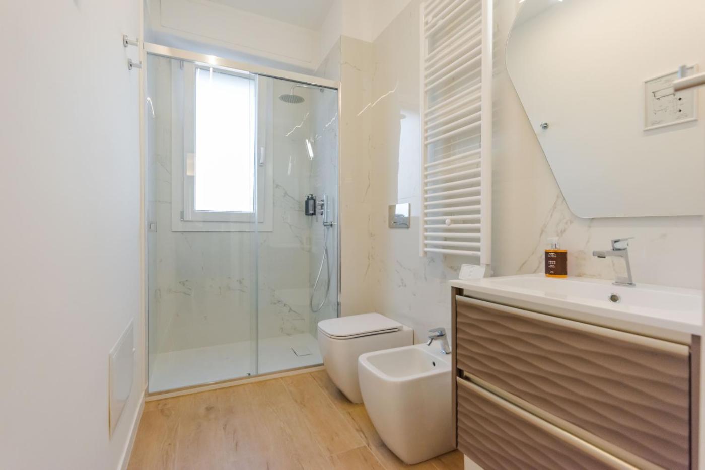 Two-Bedroom Apartment. This spacious apartment features 1 living room, 2 separate bedrooms and 2 bathrooms with a shower and a bidet. The well-equipped kitchen features a stovetop, a refrigerator, an oven and a toaster. This apartment is air-conditioned and has a flat-screen TV, a washing machine, soundproof walls and a coffee machine. The unit has 2 beds. ;