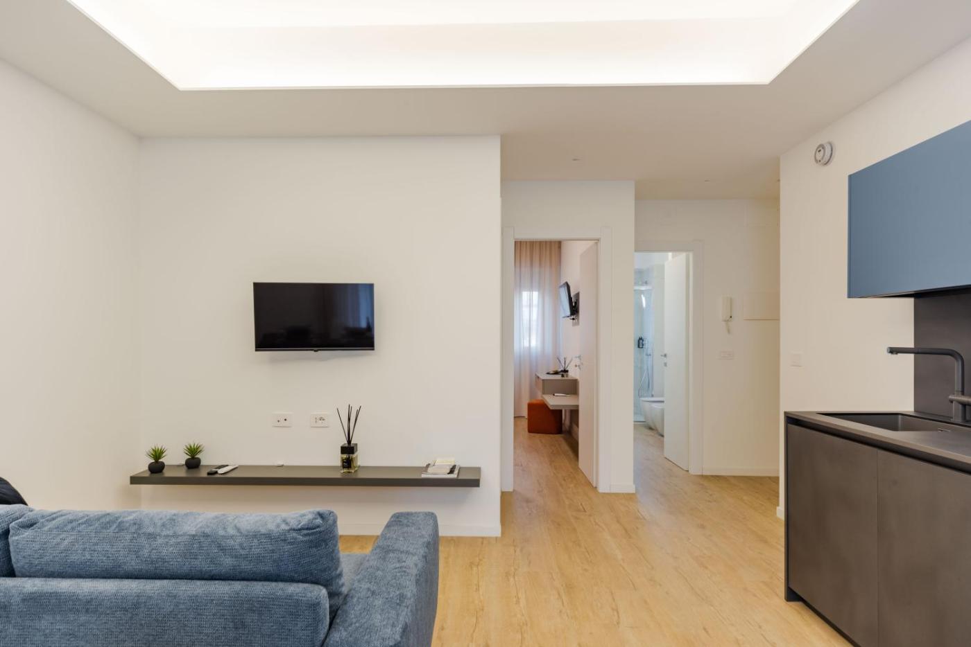One-Bedroom Apartment. This air-conditioned apartment consists of 1 living room, 1 separate bedroom and 1 bathroom with a shower. In the kitchen, guests will find a stovetop, a refrigerator, an oven and a toaster. This apartment features a washing machine, soundproof walls, a flat-screen TV and a balcony. The unit offers 1 bed.