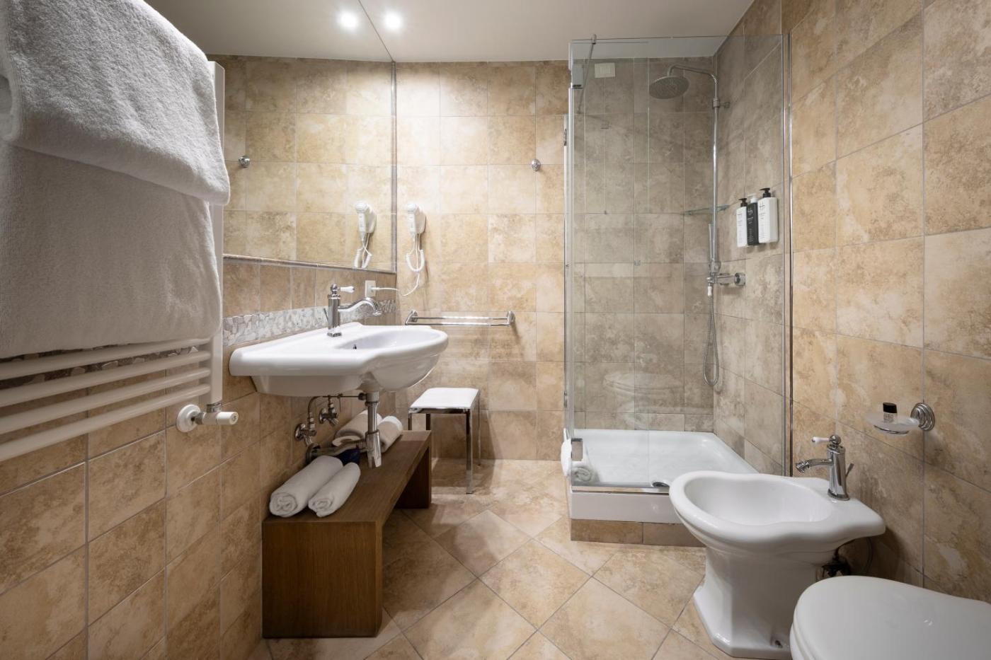Superior Double Room. This larger and elegantly furnished room blends exposed beams on the ceilings with modern comforts such as a 23 LCD TV, individual air conditioning, and a fully equipped private bathroom. Bed linen includes an allergy-free goose down duvet, and extra pillows. ;