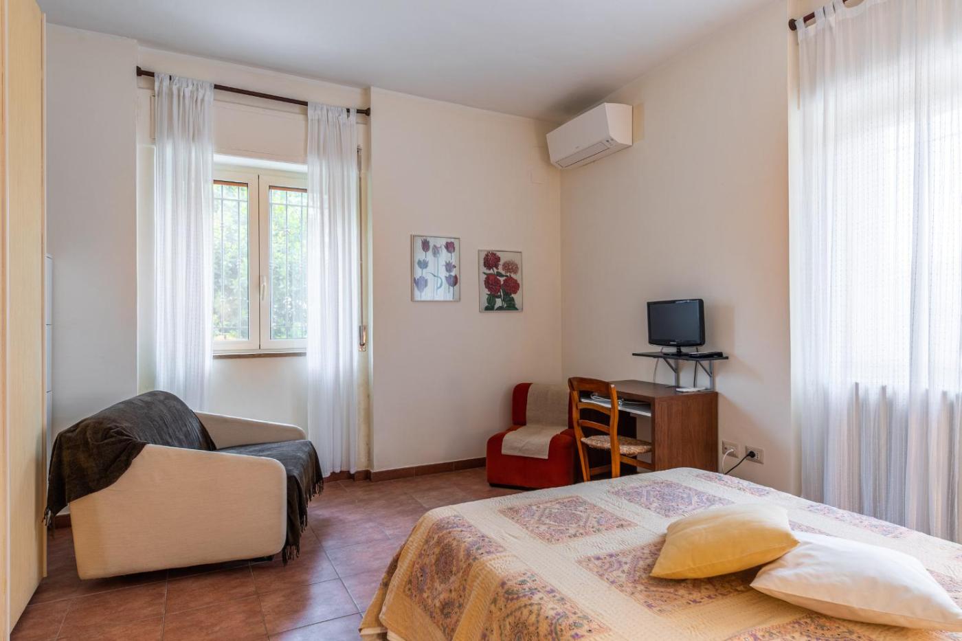 Double Room. Featuring free toiletries, this double room includes a private bathroom with a walk-in shower, a bidet and a hairdryer. The double room is furnished with a desk and a seating area and features air conditioning, a dining area and garden views. The unit has 2 beds.