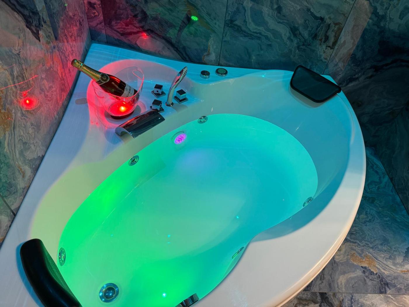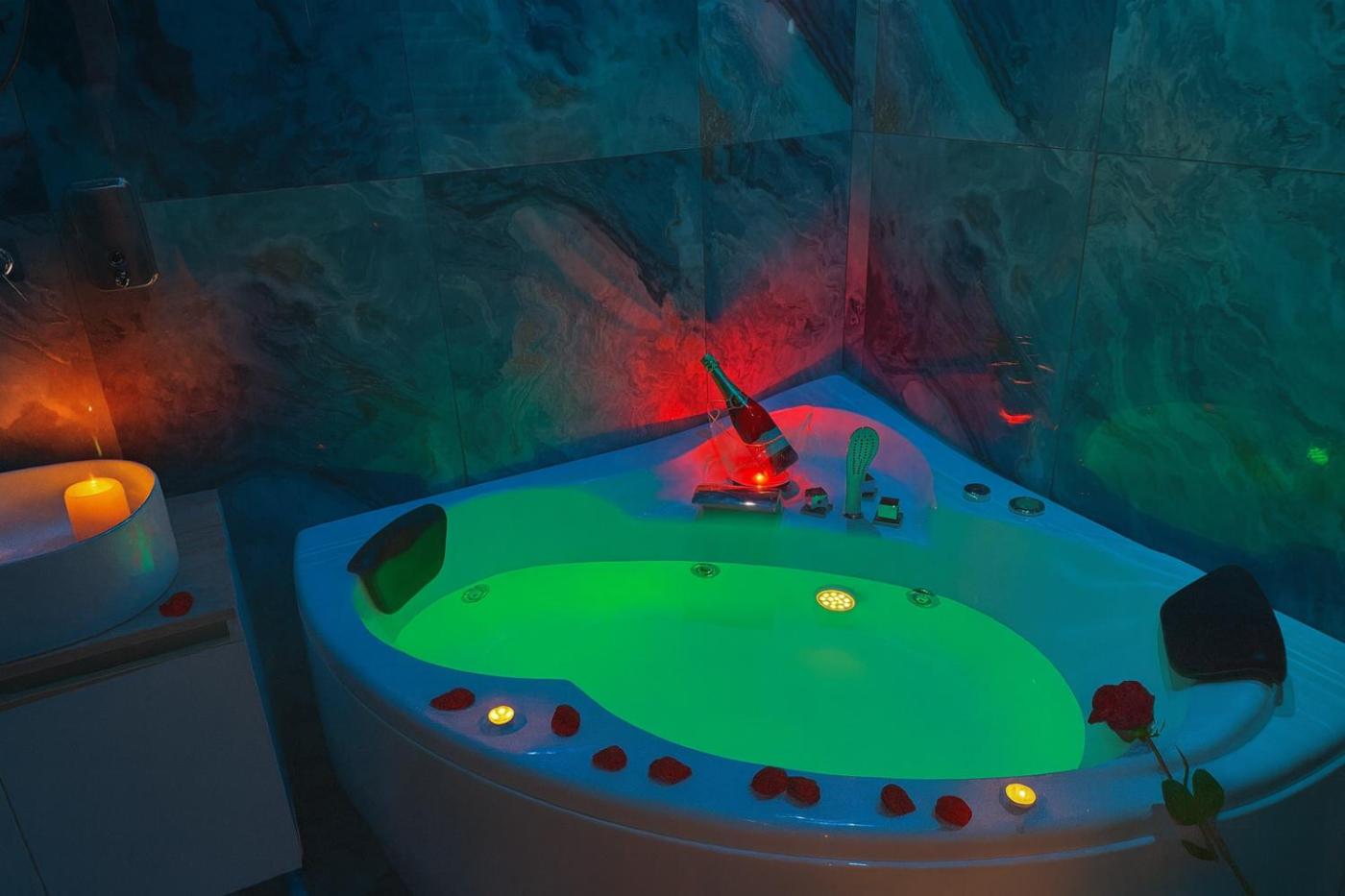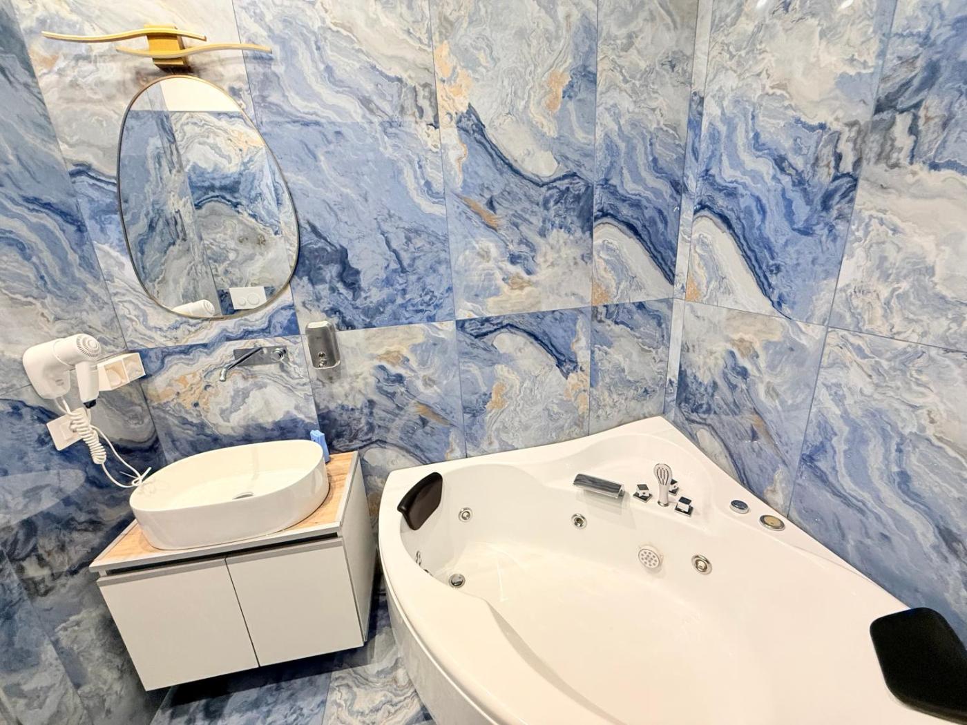 King Room with Spa Bath. This double rooms standout feature is the hot tub. Offering free toiletries, this double room includes a private bathroom with a bath, a bidet and a hairdryer. The spacious double room offers air conditioning, soundproof walls, a tea and coffee maker, a dining area, as well as a flat-screen TV with streaming services. The unit has 1 bed. ;