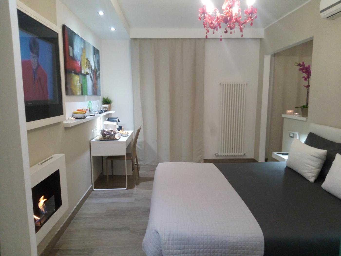 Deluxe Double Room. This double room features a fireplace. Featuring free toiletries, this double room includes a private bathroom with a shower, a bidet and a hairdryer. The air-conditioned double room features a flat-screen TV, a private entrance, a minibar, a tea and coffee maker as well as garden views. The unit has 1 bed.