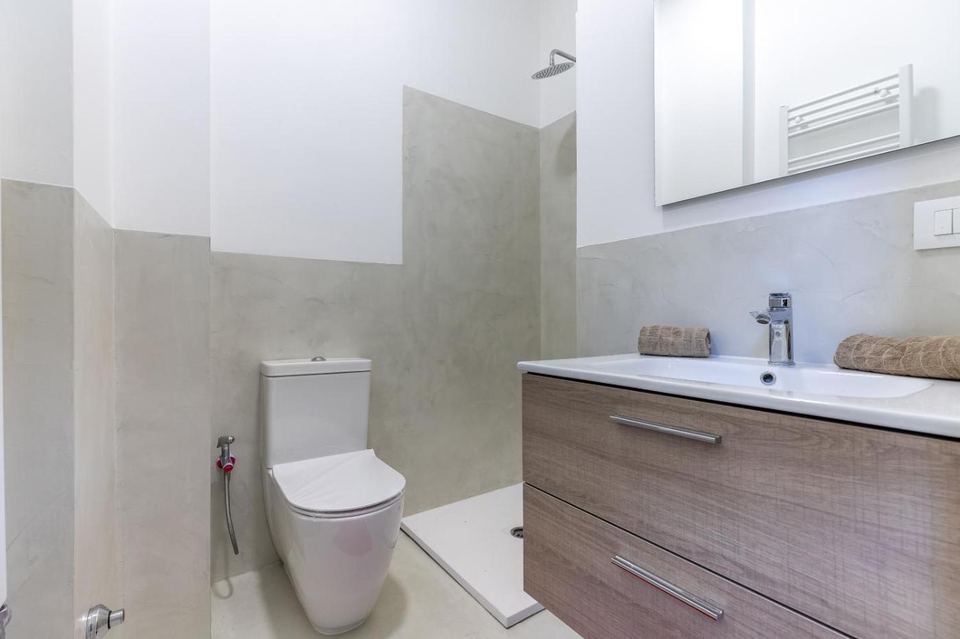 One-Bedroom Apartment. This air-conditioned apartment includes 1 living room, 1 separate bedroom and 1 bathroom with a shower. The apartments kitchenette is available for cooking and storing food. A seating area with a flat-screen TV, a washing machine and a balcony are offered in this apartment. The unit has 2 beds.