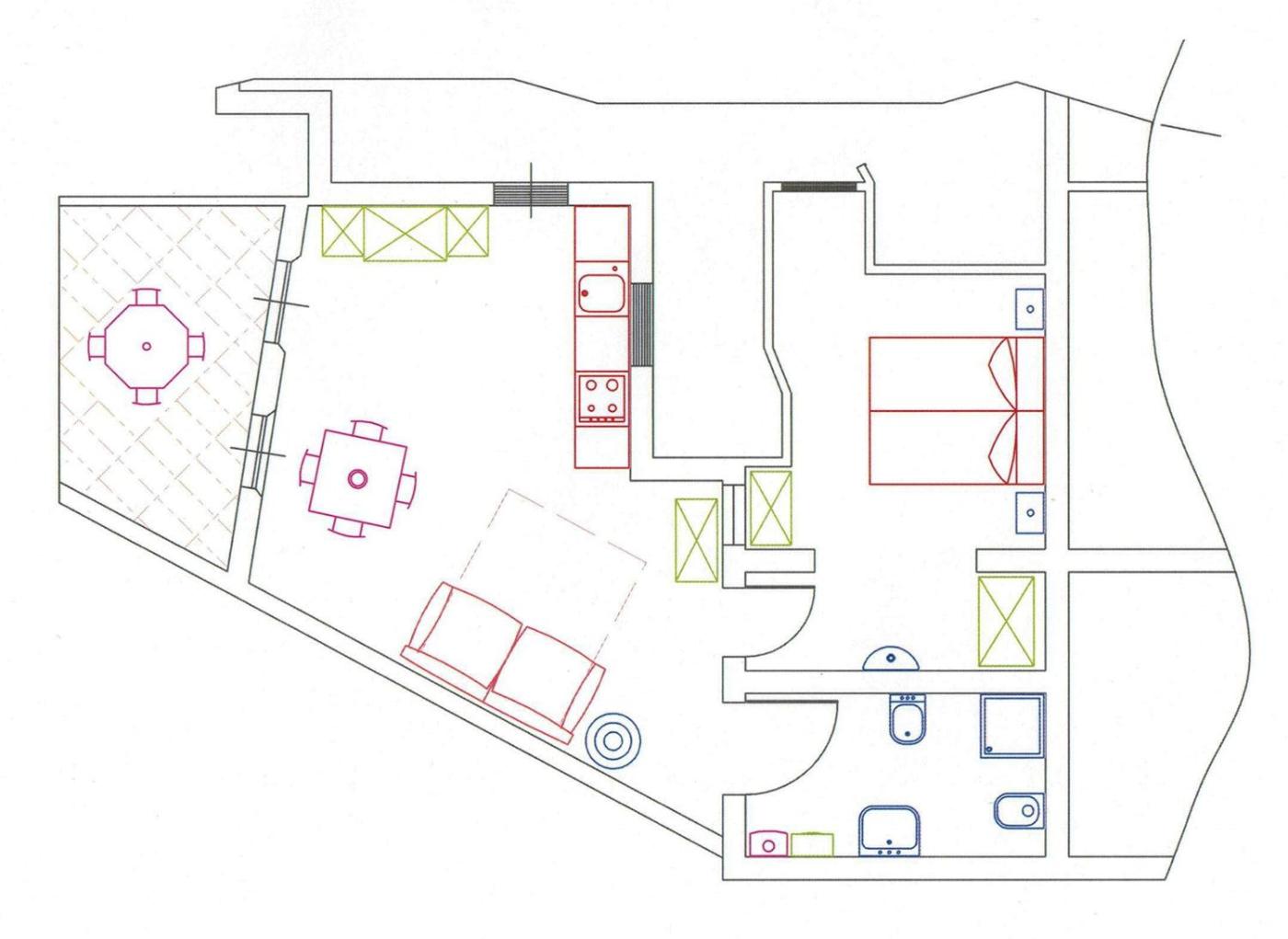 One-Bedroom Apartment. This apartment offers a pool with a view. Featuring a private entrance, this air-conditioned apartment comprises 1 living room, 1 separate bedroom and 1 bathroom with a bath and a shower. Guests will find a stovetop, a refrigerator, a dishwasher and kitchenware in the kitchen. The apartment also provides guests with a barbecue. Boasting a terrace with garden views, this apartment also provides a washing machine and a flat-screen TV with cable channels. The unit offers 2 beds.
