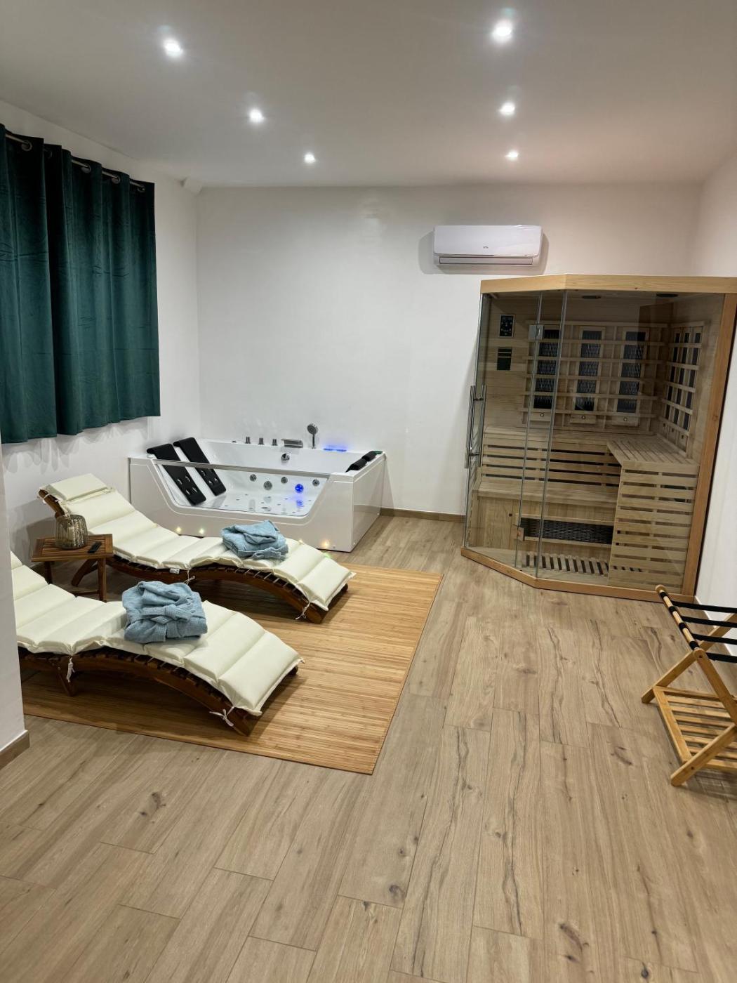 Suite with Hot Tub. This suites standout features are the hot tub, spa bath and sauna. The air-conditioned suite features 1 bedroom and 1 bathroom with a shower and a bidet. Featuring a terrace with garden views, this suite also provides a minibar and a flat-screen TV with streaming services. The unit offers 1 bed.