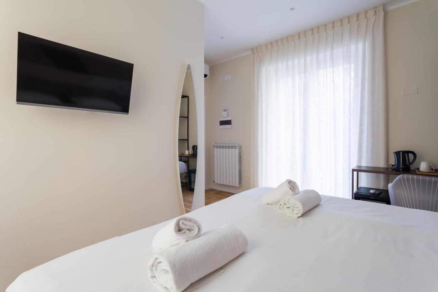 Triple Room. Featuring free toiletries and bathrobes, this triple room includes a private bathroom with a shower, a bidet and a hairdryer. The triple room features air conditioning, a tea and coffee maker, a wardrobe, parquet floors and a flat-screen TV. The unit has 2 beds.