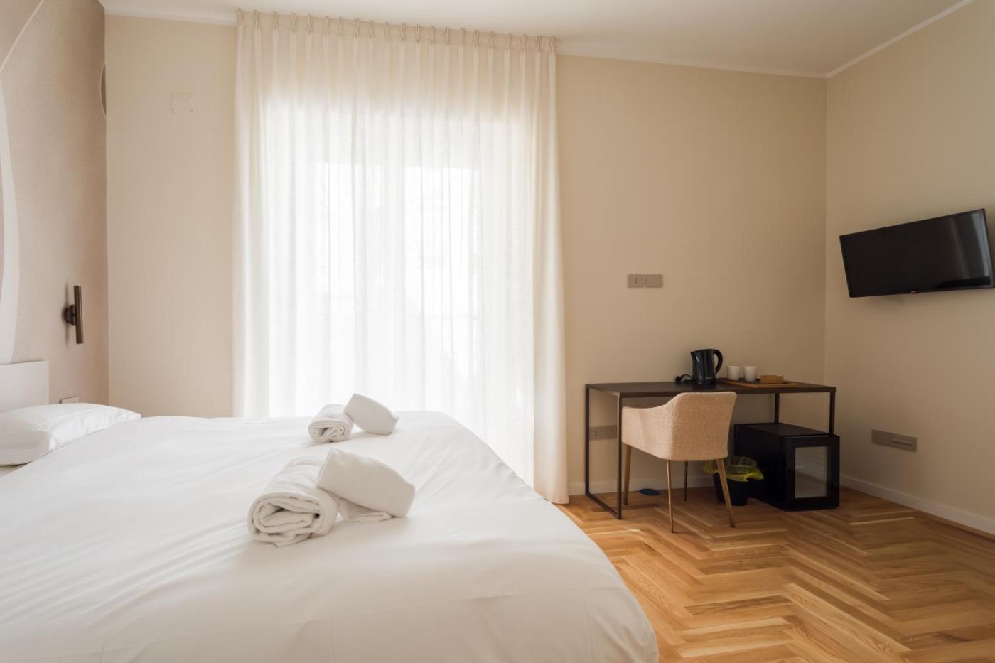 Deluxe Room. Providing free toiletries and bathrobes, this double room includes a private bathroom with a shower, a bidet and a hairdryer. This double room is air-conditioned and features a flat-screen TV, a tea and coffee maker, a wardrobe and parquet floors. The unit offers 1 bed. ;
