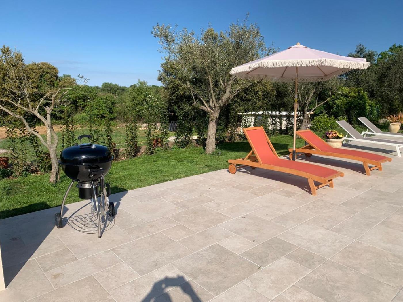 Two-Bedroom Villa. Guests will have a special experience as this villa features a pool with a view and a fireplace. Featuring a private entrance, this air-conditioned villa comprises 1 living room, 2 separate bedrooms and 2 bathrooms with a walk-in shower and a bidet. Guests will find a stovetop, a refrigerator, kitchenware and an oven in the fully equipped kitchen. The villa also provides guests with a barbecue. Boasting a terrace with garden views, this villa also provides a washing machine and a flat-screen TV. The unit offers 3 beds.