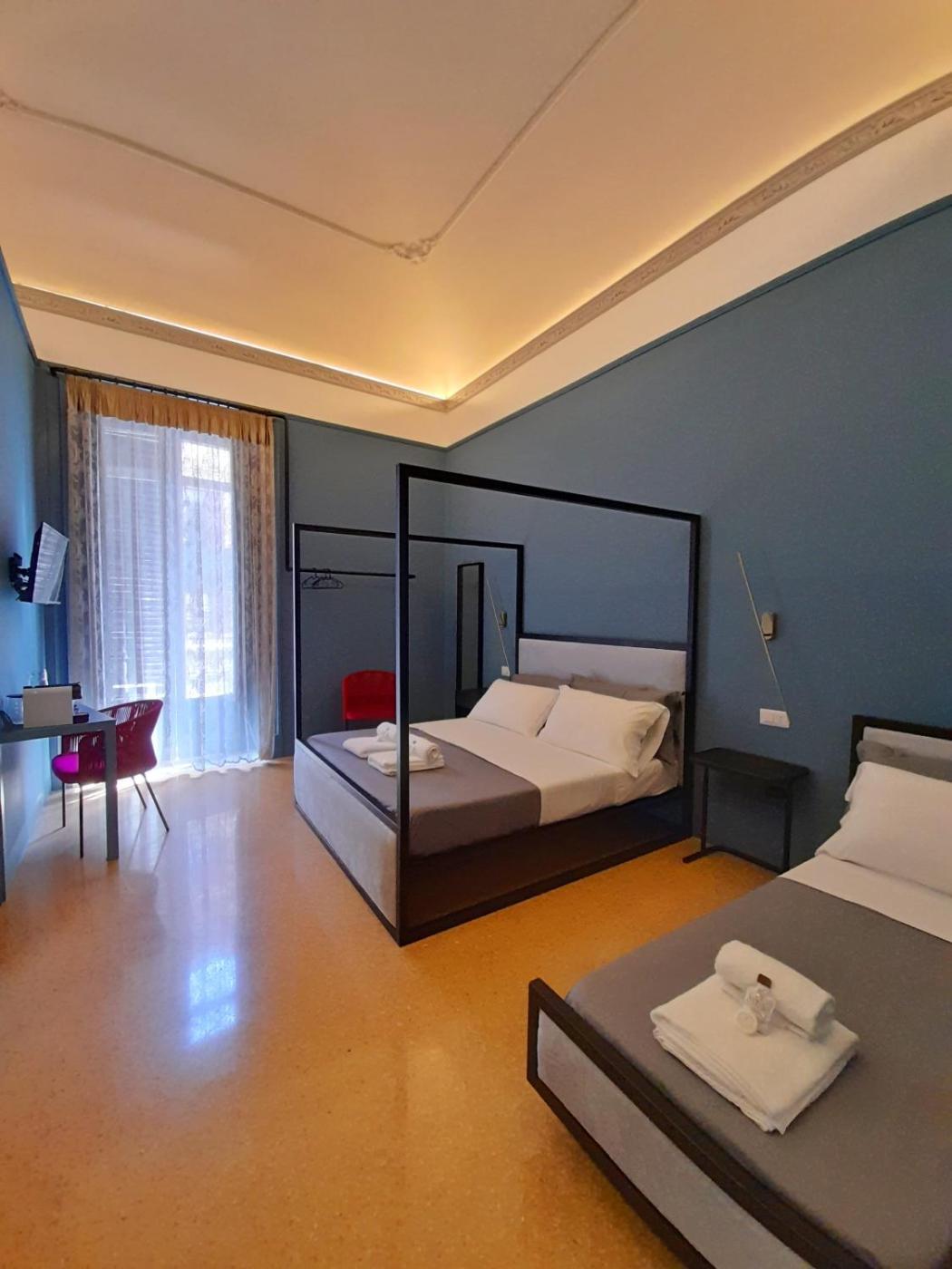 Each room at Mamamia #Teatro Biondo feature a private ensuite bathroom, TV, coffee maker, double pillows, memory foam mattresses, a shared terrace and a shared kitchen.