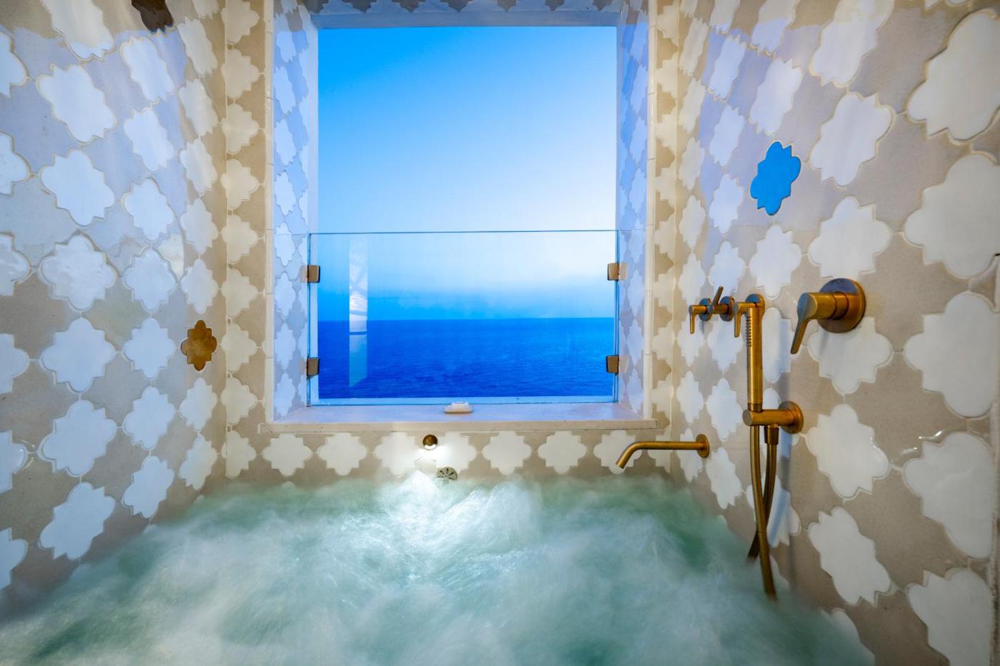 One-Bedroom House. This holiday homes special feature is the hot tub. Featuring a private entrance, this air-conditioned holiday home consists of 1 living room, 1 separate bedroom and 2 bathrooms with a shower and a bidet. The fully equipped kitchen features a stovetop, a refrigerator, a dishwasher and kitchenware. Boasting a terrace with sea views, this holiday home also provides a washing machine and a flat-screen TV with streaming services. The unit offers 2 beds.