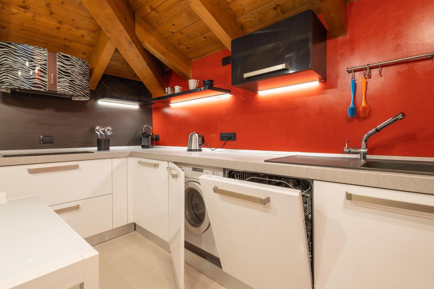 One-Bedroom Apartment. This apartment consists of 1 living room, 1 separate bedroom and 1 bathroom with a shower and free toiletries. In the well-fitted kitchenette, guests will find a stovetop, a refrigerator, a dishwasher and an oven. This apartment is air-conditioned and features a seating area with a flat-screen TV, a washing machine, a tea and coffee maker, a dining area, as well as a wardrobe. The unit offers 3 beds.