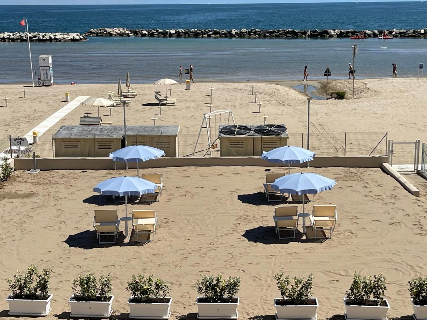 Situated in Rimini, Villa "Baci sul Mare" Attico- Spiaggia privata is a recently renovated accommodation, a few steps from Marina Di Viserbella Beach and 5.3 km from Rimini Fiera. This beachfront property offers access to free WiFi and free private parking. The property is soundproof and is located 6.8 km from Rimini Train Station.