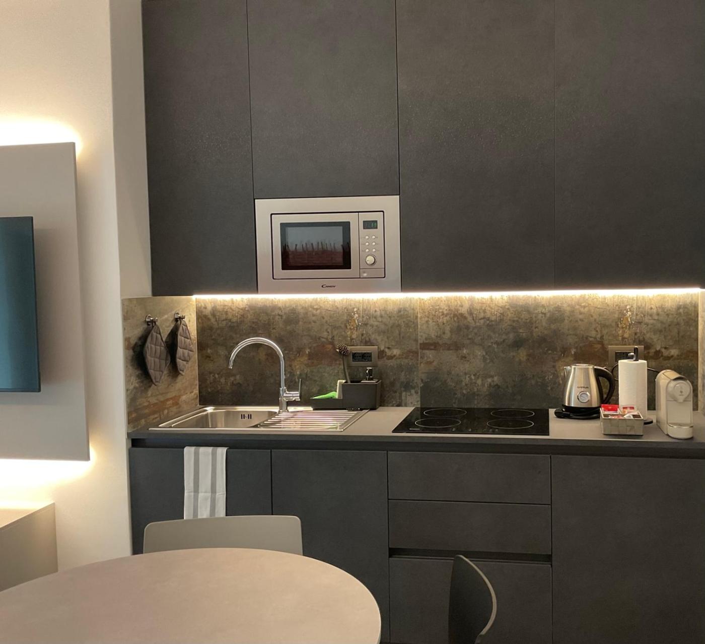 One-Bedroom Apartment. This apartment comprises 1 living room, 1 separate bedroom and 1 bathroom with a shower and free toiletries. In the kitchen, guests will find a stovetop, a refrigerator, a dishwasher and kitchenware. This apartment is air-conditioned and features a seating area with a flat-screen TV, a washing machine, a tea and coffee maker, a wardrobe, as well as a sofa. The unit offers 2 beds. ;