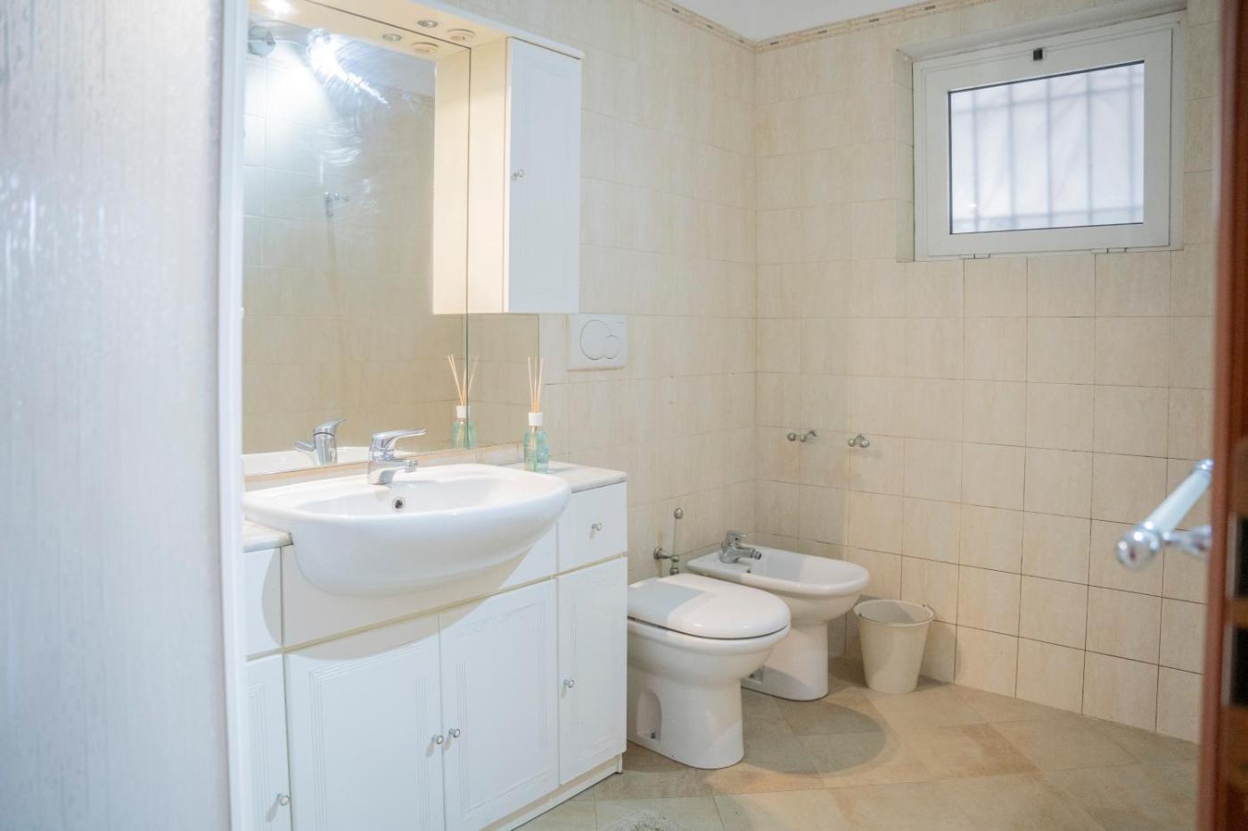 Two-Bedroom Apartment. Boasting a private entrance, this air-conditioned apartment includes 1 living room, 2 separate bedrooms and 1 bathroom with a shower and a bidet. Guests can make meals in the kitchen that is fitted with a stovetop, a refrigerator, kitchenware and an oven. A seating area with a flat-screen TV, a washing machine and a patio are offered in this spacious apartment. The unit has 3 beds.