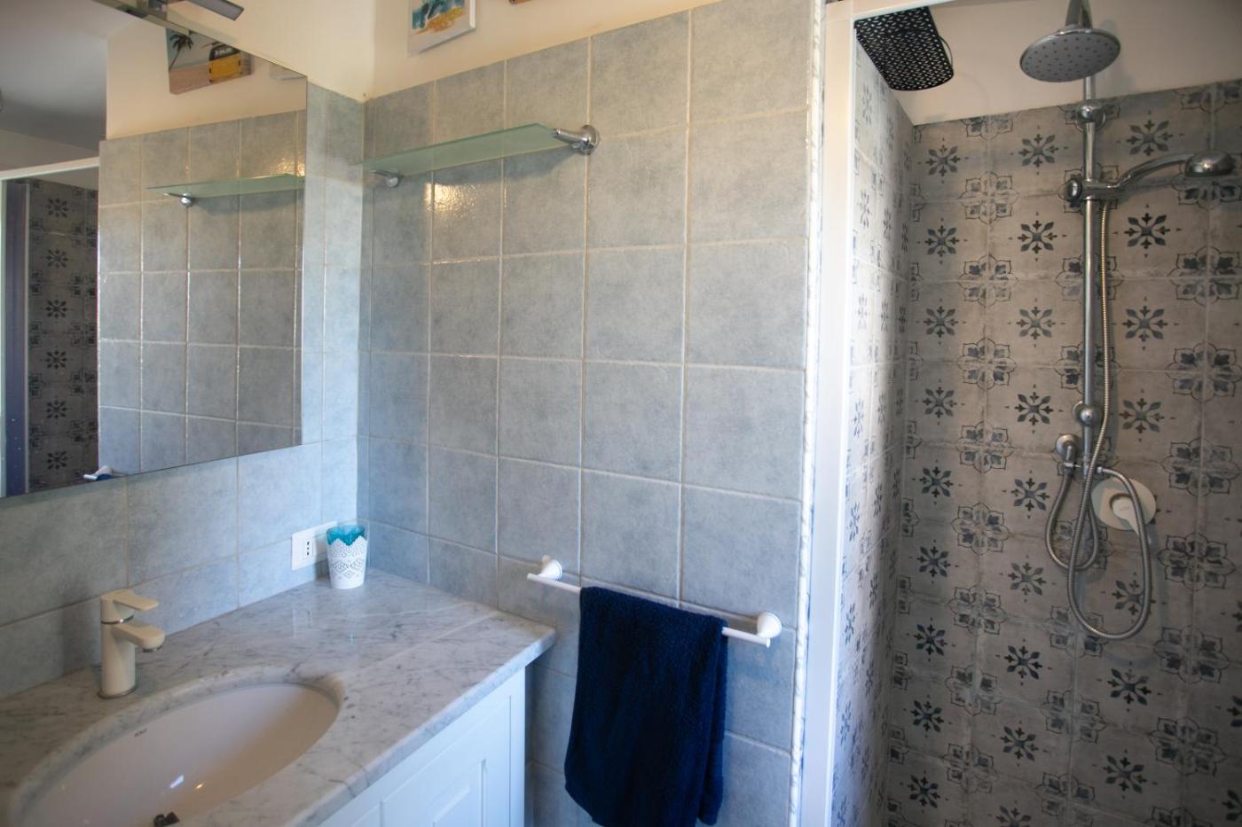 The holiday home with a terrace and sea views features 1 bedroom, a living room, a flat-screen TV, an equipped kitchen with a microwave and a toaster, and 1 bathroom with a bidet. Towels and bed linen are provided in the holiday home. For added privacy, the accommodation has a private entrance and is protected by full-day security.